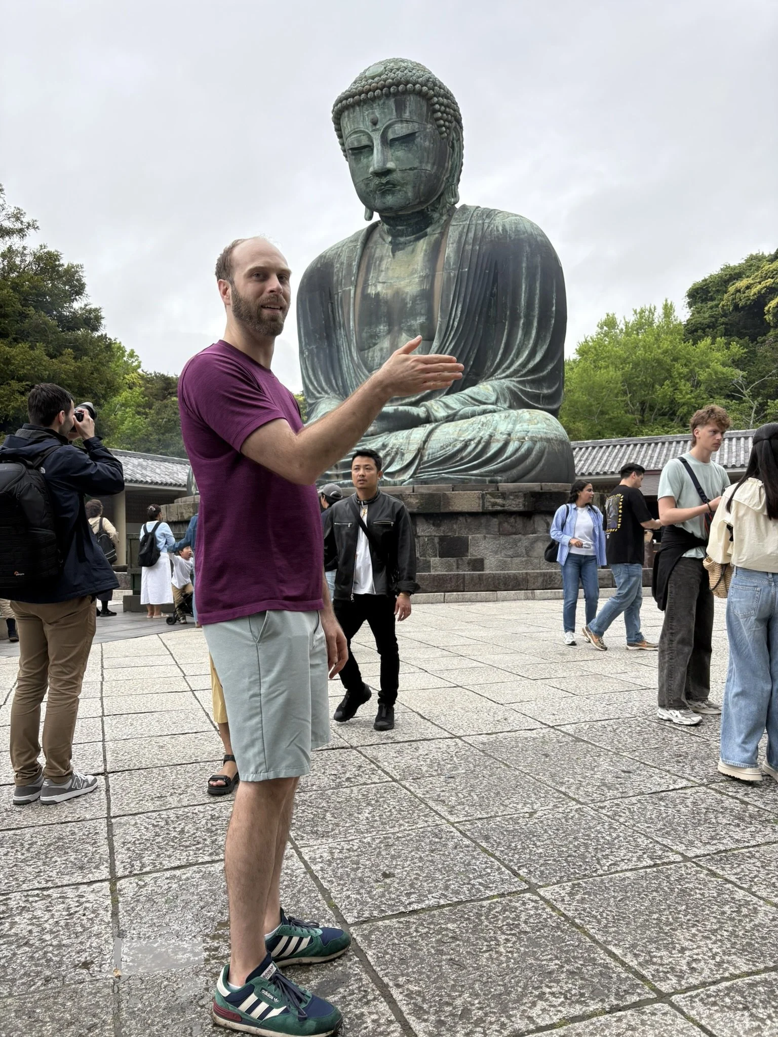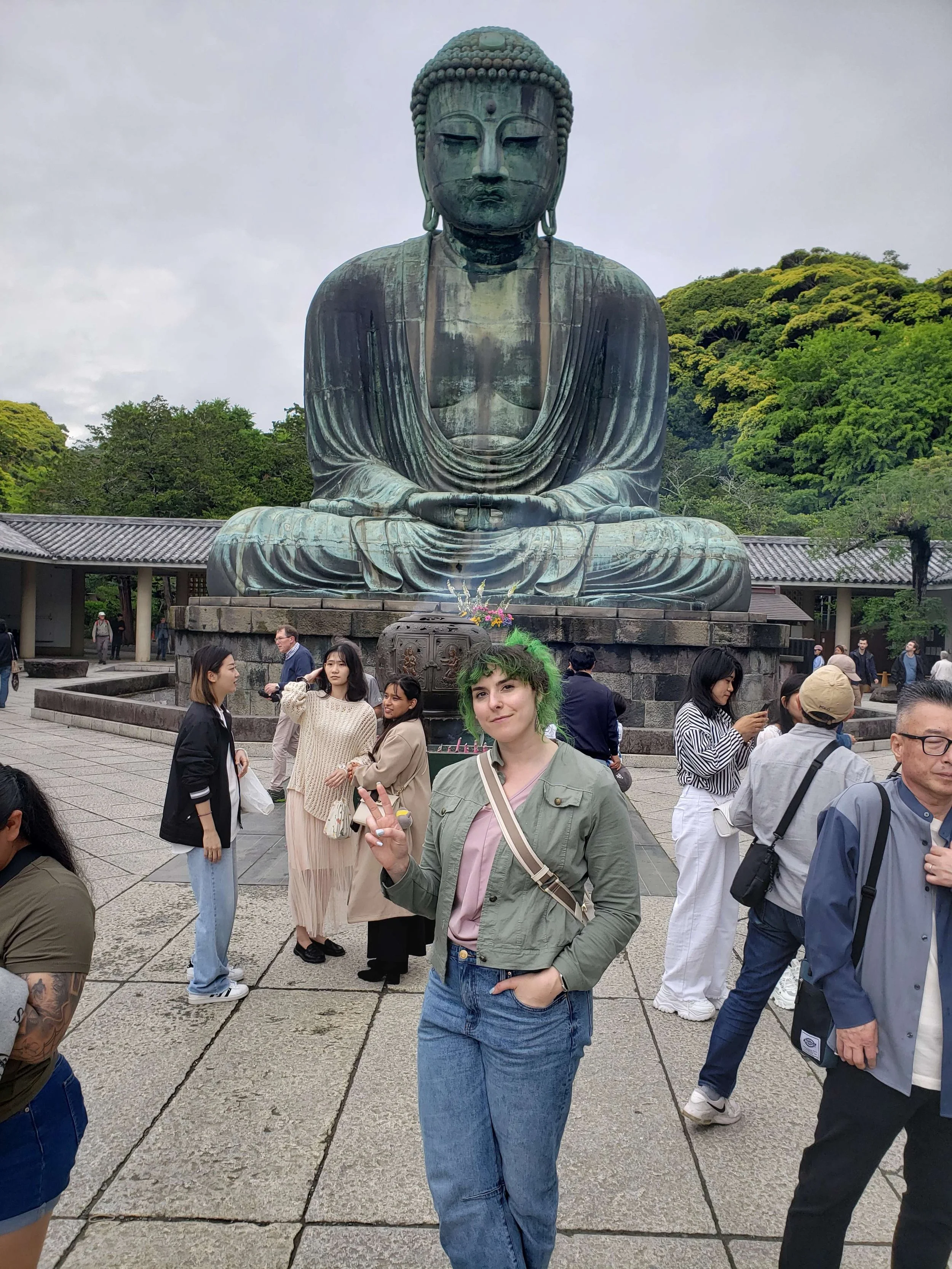 We’d pretty thoroughly explored Enoshima Island at this point, so we grabbed a cone of blue jeans-flavored ice cream (kidding, it’s named for the color) and hopped on a train to Kamakura City to check out one of the most famous landmarks in Japan: the Great Buddha of Kamakura.