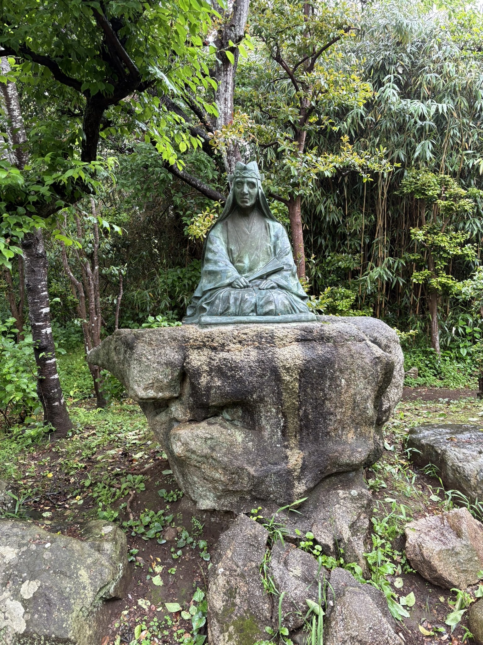 A statue of Yamada Kengyo, who learned to play the koto and became a composer after losing his sight at a young age.