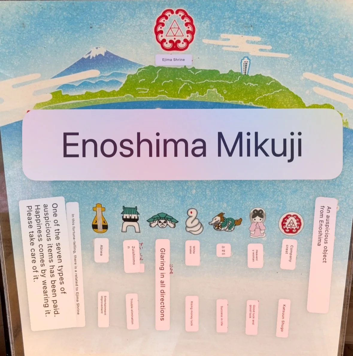 On the way, we started coming across more images of dragons and signs about the myths of Enoshima. I pieced together the folklore of “The Maiden and the Five Headed Dragon” from translated signs as we got closer to the caves: