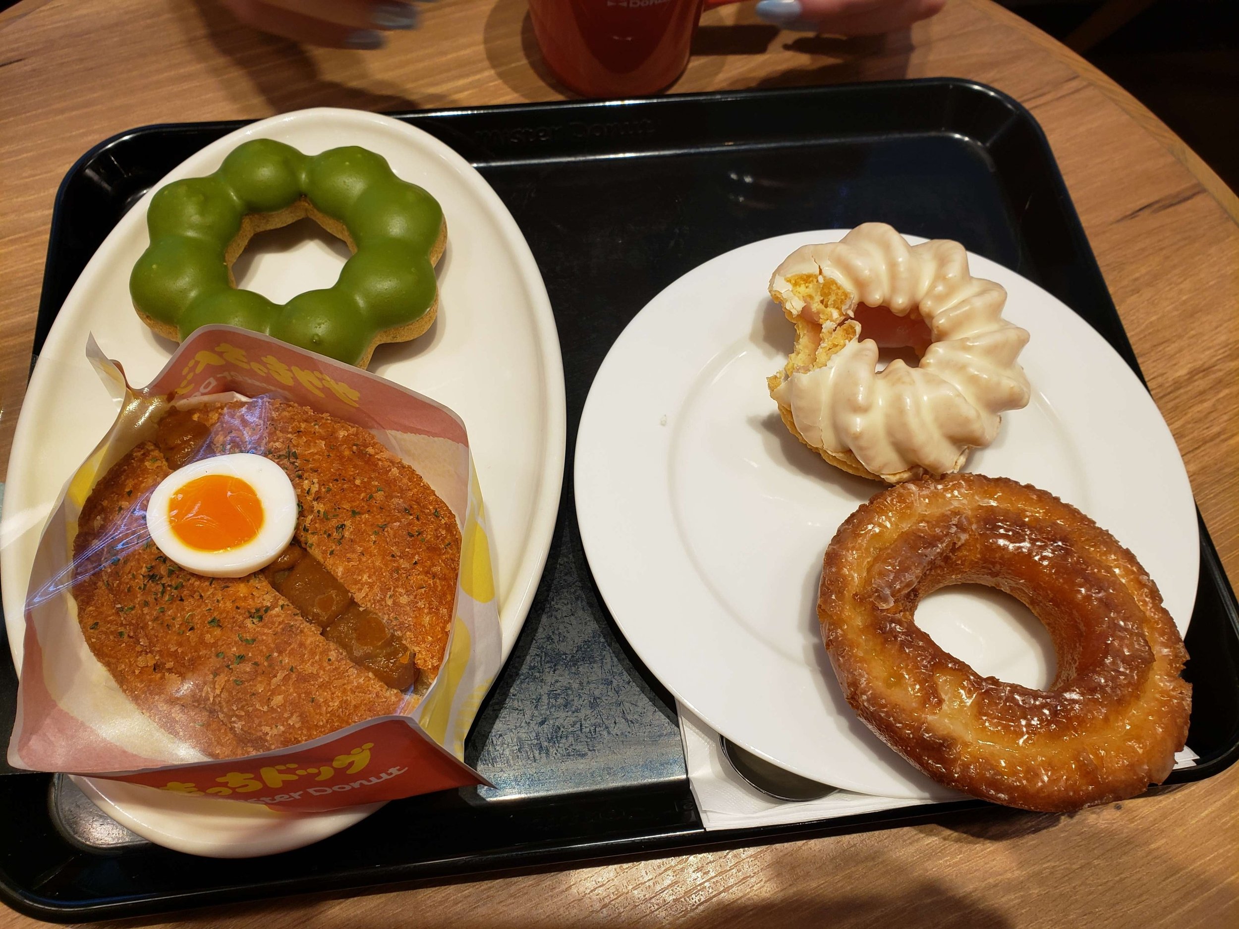We tried donuts with matcha topping and red bean filling, which were good, but Jeff also got this wild ‘donut’ that was actually also a hot dog topped with curry sauce and a slice of egg.