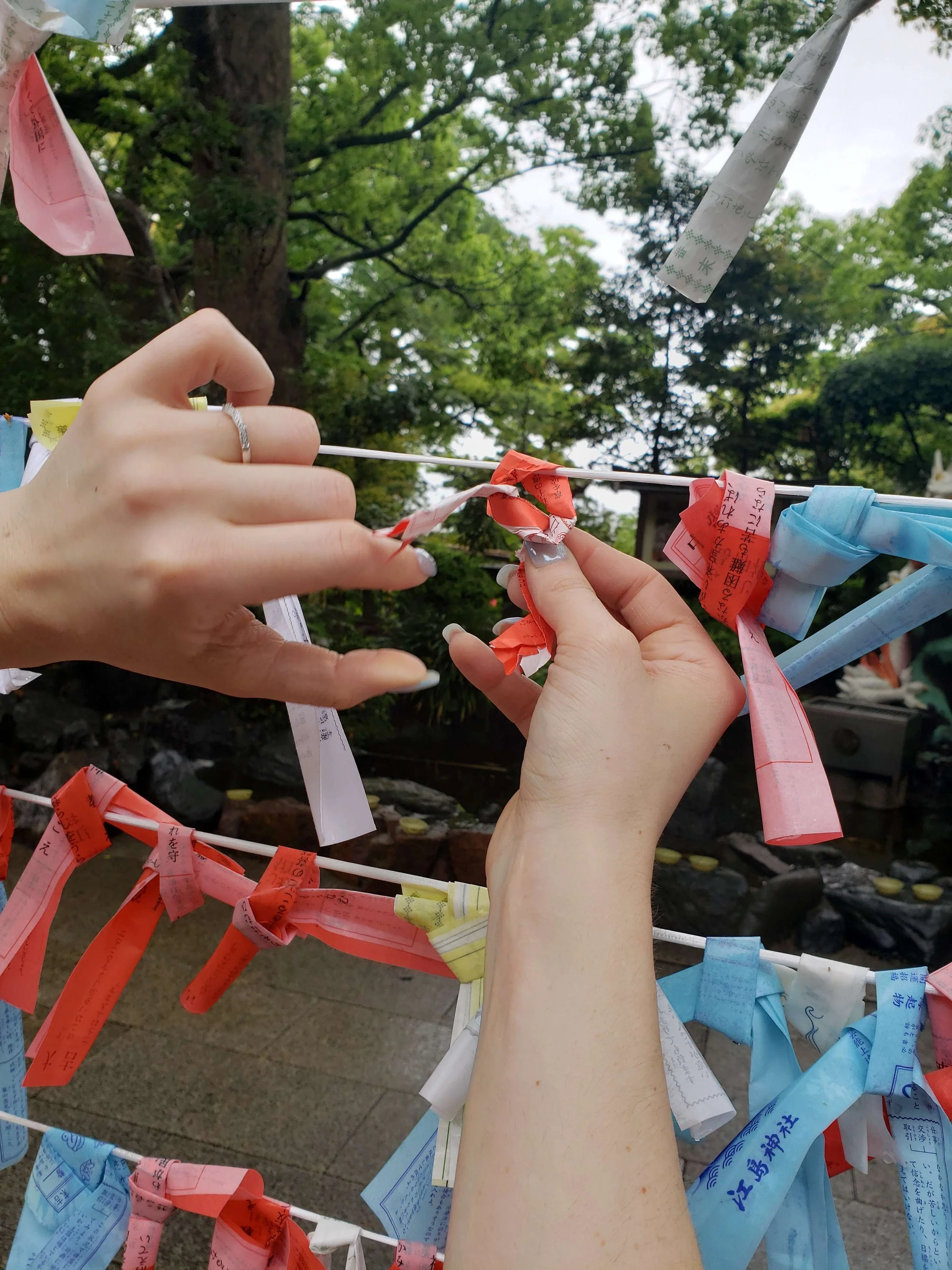 Pictured here: me tying off my fortune that probably has winning lottery numbers written on it, all because I’m illiterate in Japan.