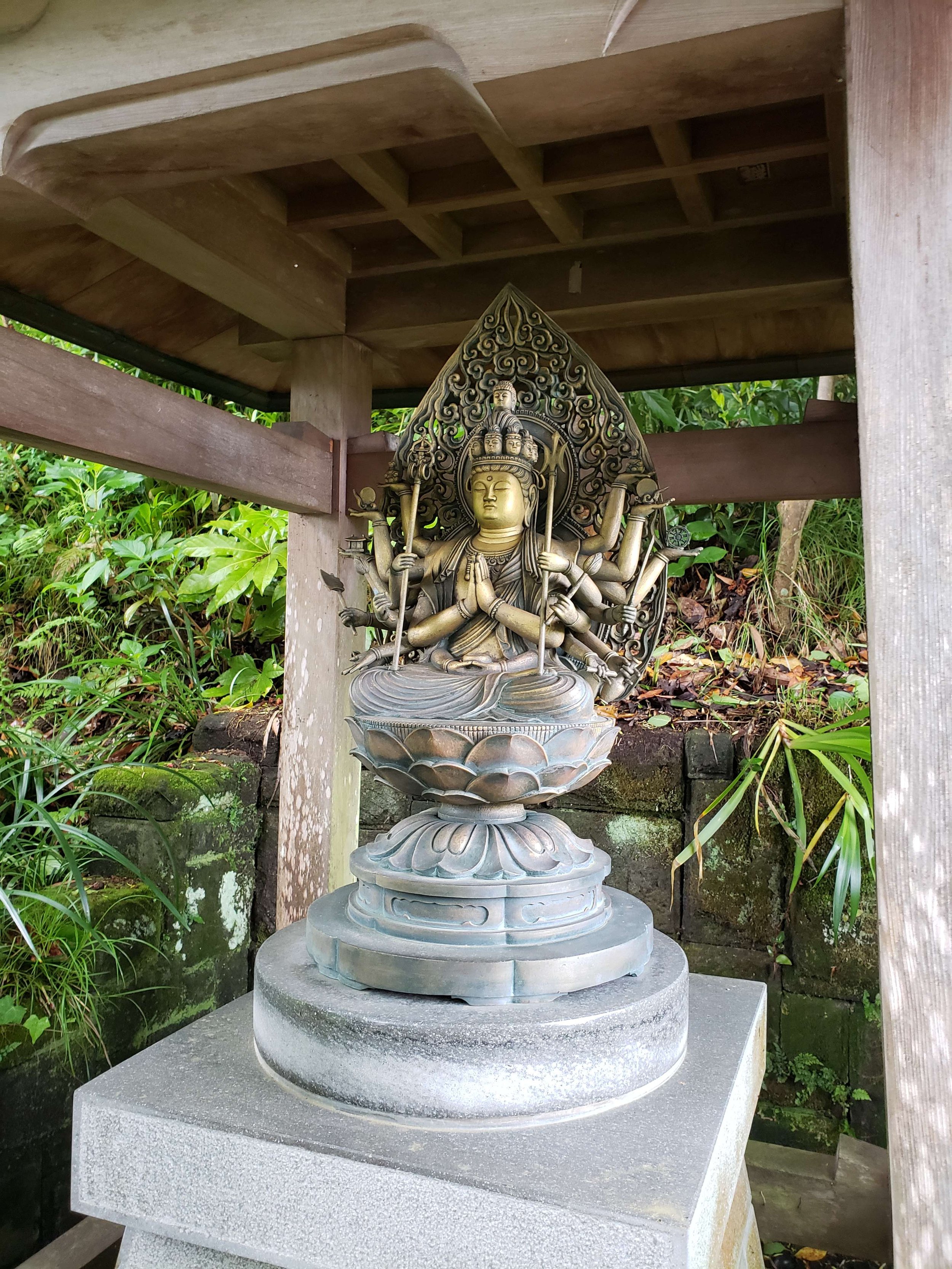 A statue of Kannon. The multiple arms of deities emphasize their power and ability to reach out and help many people in many ways.