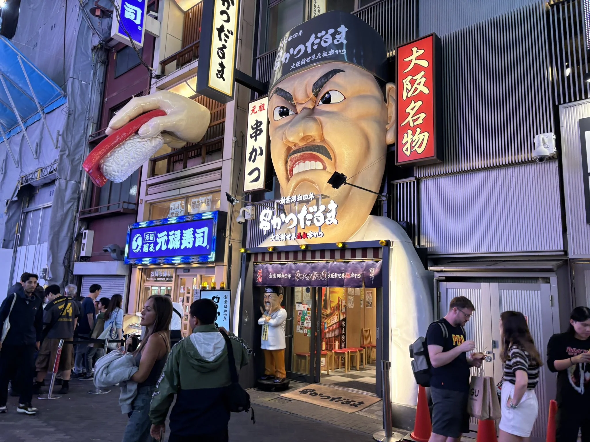 Since we arrived in the evening, our options for finding a place to eat were limited. After a bit of deliberating, we decided Osaka would be the perfect place to try this wacky Japanese restaurant we’d heard about from a friend, and we headed off toward a district called Dotonbori to grab a table. Dotonbori is famous for its giant neon signs and busy nightlife—in many ways, it reminded me a bit of the Las Vegas Strip. It’s also a rumored hotspot for Yakuza activity (aka the Japanese Mafia), so it’s probably one of the few locations in Japan you might get ripped off if you’re super careless. Apparently the common scam is to lure tourists into a Yakuza-run bar or restaurant using pretty girls, serve them food and drinks without posted prices, and then bring them a massively inflated bill. Think going to a sports bar, opening a tab, and finding out you were getting charged $20 per 12oz can of Coors light. But, like I said, these seedy places are easy to pick out because they always have suggestively dressed hostesses out front with really mean looking bouncers standing in the shadows just a few feet behind them, so you won’t exactly get scammed unless you have zero situational awareness.