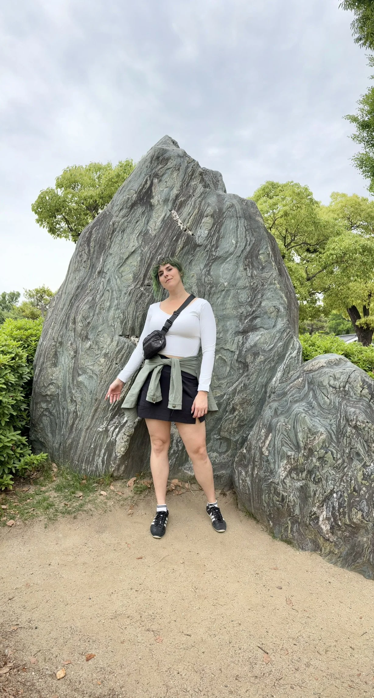 This is the Octopus Stone, the biggest single stone used in any castle in Japan. Me for scale.