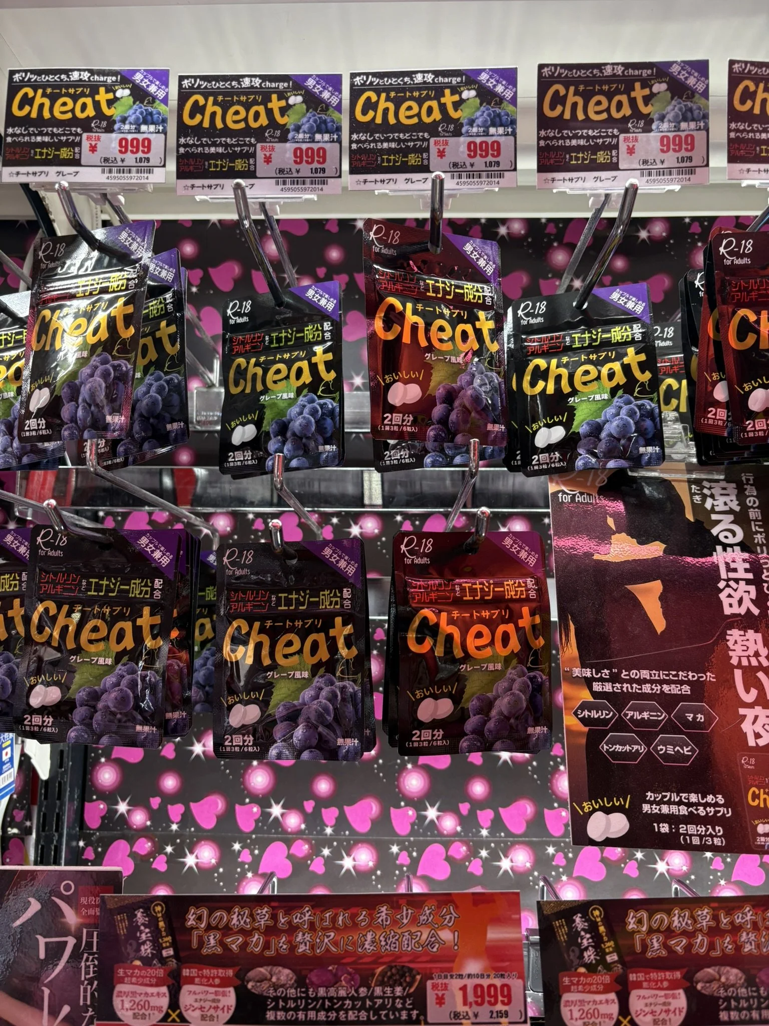 We were absolutely losing it at this brand of ‘performance enhancing’ candy tablets called Cheat.