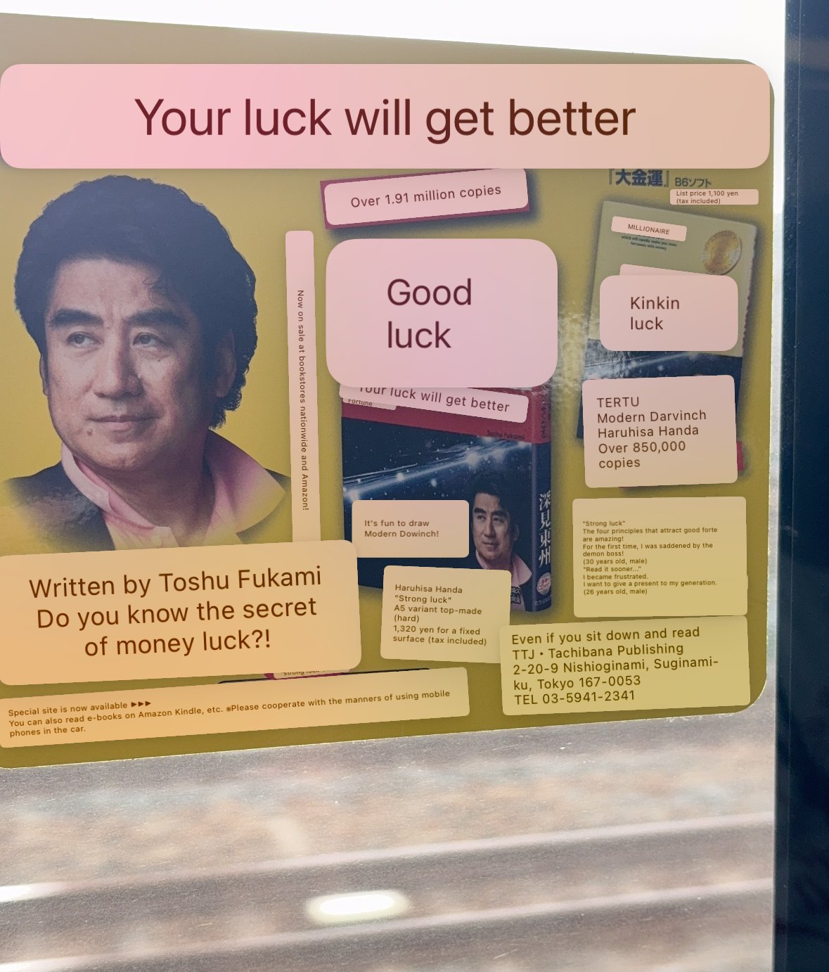 An ad on the train. Listen, I’d buy this guy’s book. Look at that collar.